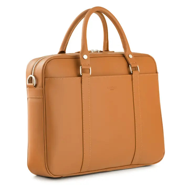 Crafted from genuine Ruga leather, this laptop bag features an elegant and modern Italian design that blends sophistication with practicality. Lightweight, compact, and refined, it's ideal for professionals seeking a distinctive, stylish look. The spacious interior comfortably fits a 15-inch laptop, with a secure zippered compartment and multiple pockets to keep your essentials organized. An exterior pocket adds convenient extra storage.